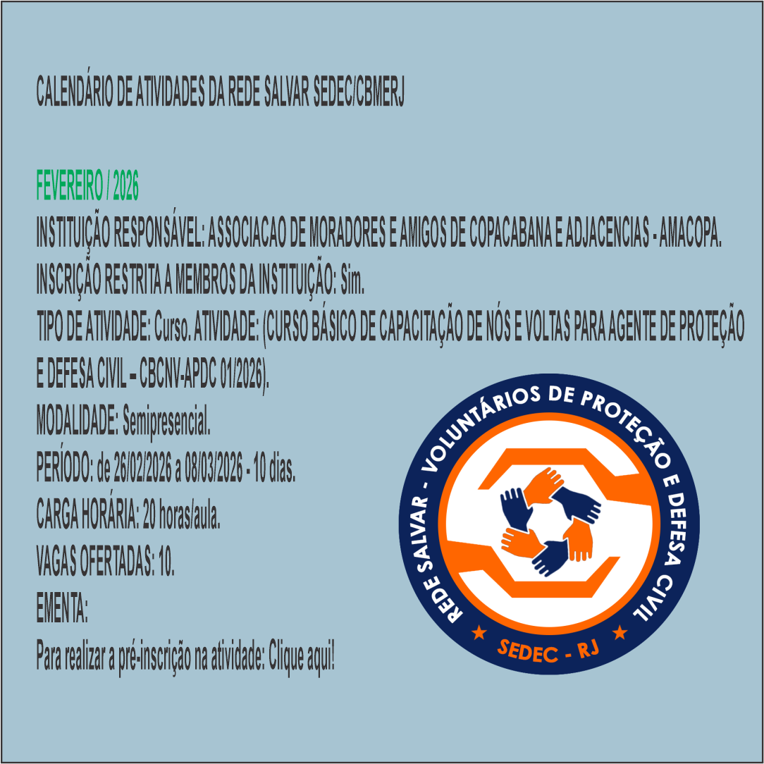 Rede institucional vinculada à Secretaria de Estado de Defesa Civil do Rio de Janeiro, voltada à capacitação, integração e mobilização de voluntários no âmbito estadual, alinhada às diretrizes do SINPDEC.